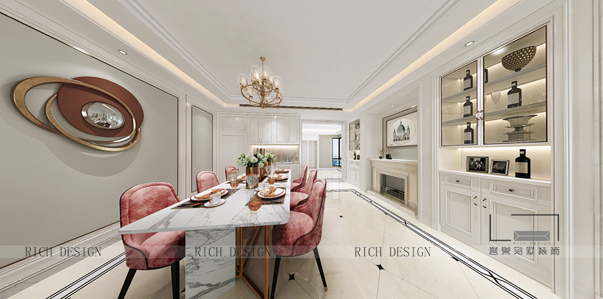 設(shè)計(jì)師在傳統(tǒng)法式的基礎(chǔ)上衍生出有新法式面貌的風(fēng)格,在保留法式的傳統(tǒng)裝飾圓度下做簡(jiǎn)化處理,形態(tài)簡(jiǎn)約而不失奢華,打造利落率性的氣質(zhì),呈現(xiàn)出時(shí)尚與奢華的空間。
