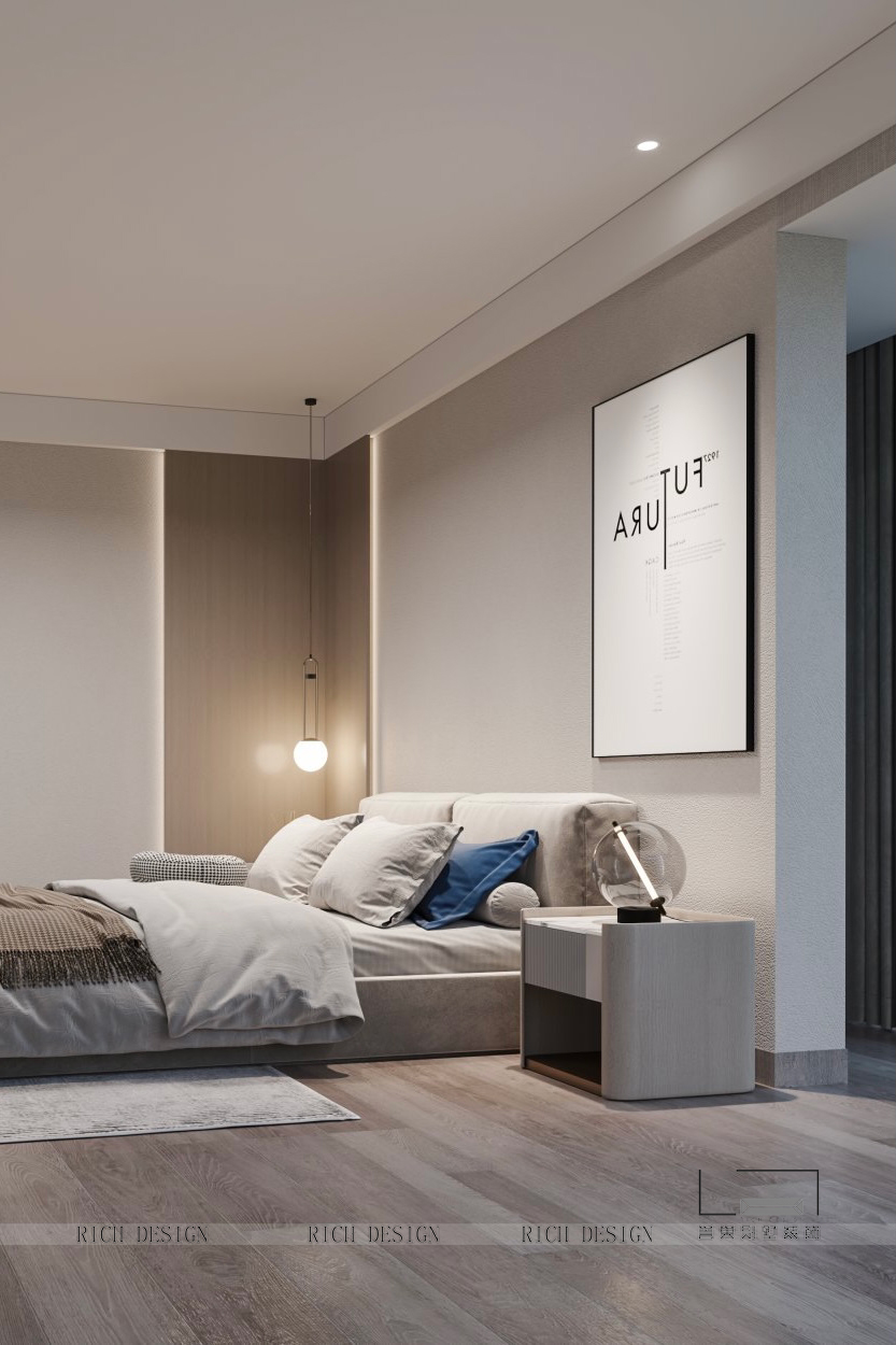 主業(yè)的私密空間以流暢的動(dòng)線來(lái)鋪展,強(qiáng)調(diào)功能、結(jié)構(gòu)、形式的便捷與完整,追求材質(zhì)的表現(xiàn)深度。立面簡(jiǎn)約延伸的木飾面,拉升了空間高度的同時(shí),凸顯細(xì)節(jié)品質(zhì)。