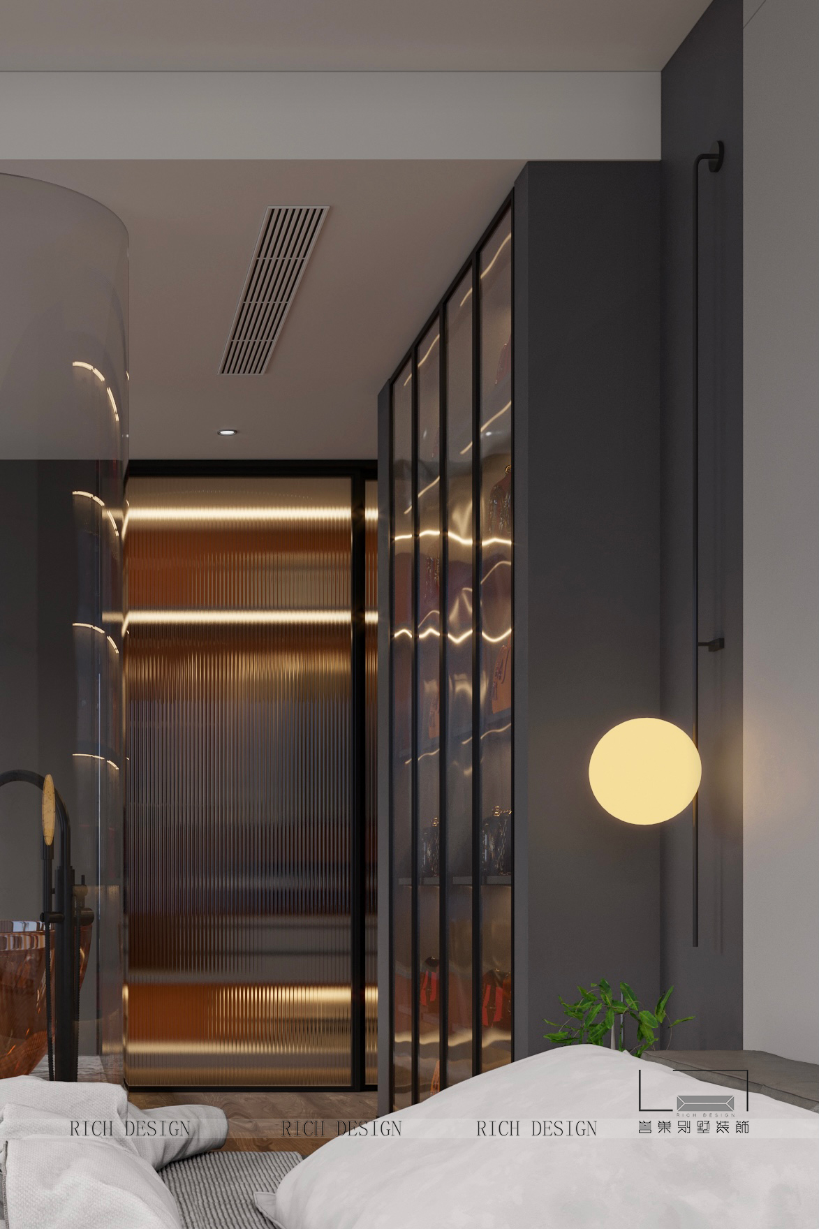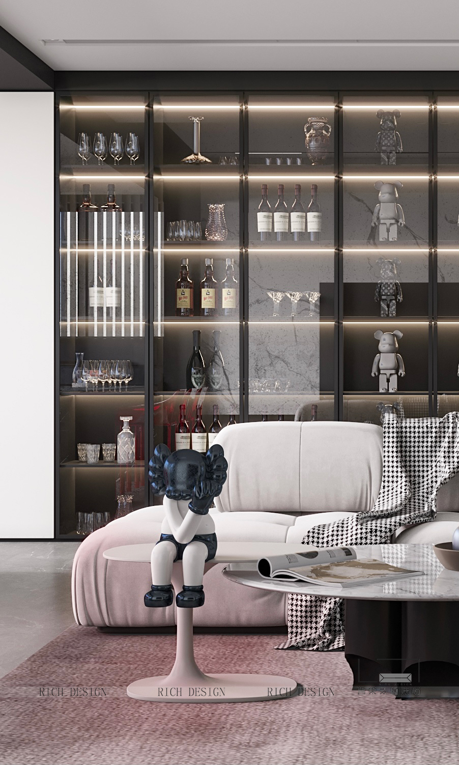 本案的空間設(shè)計策略從場域氣質(zhì)、功能舒適度和美學(xué)價值出發(fā),將嚴(yán)謹(jǐn)?shù)淖匀蝗司优c柔性的生活藝術(shù)價值相糅合,呈現(xiàn)兼具理性基調(diào)與感性表情的高品質(zhì)居住方式。