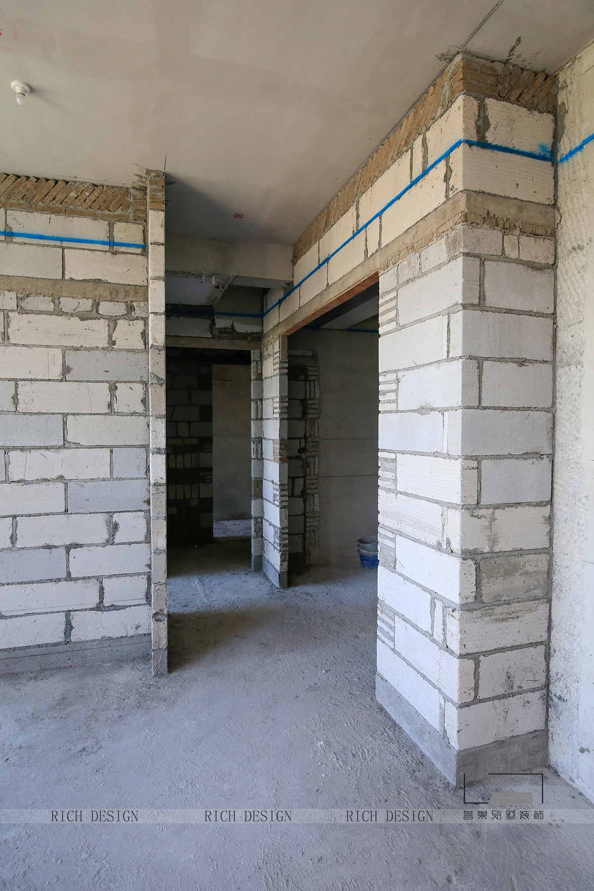 門洞每隔20公分采用四個(gè)灰沙磚夾砌,后期固定門套時(shí)會(huì)增強(qiáng)握釘力。